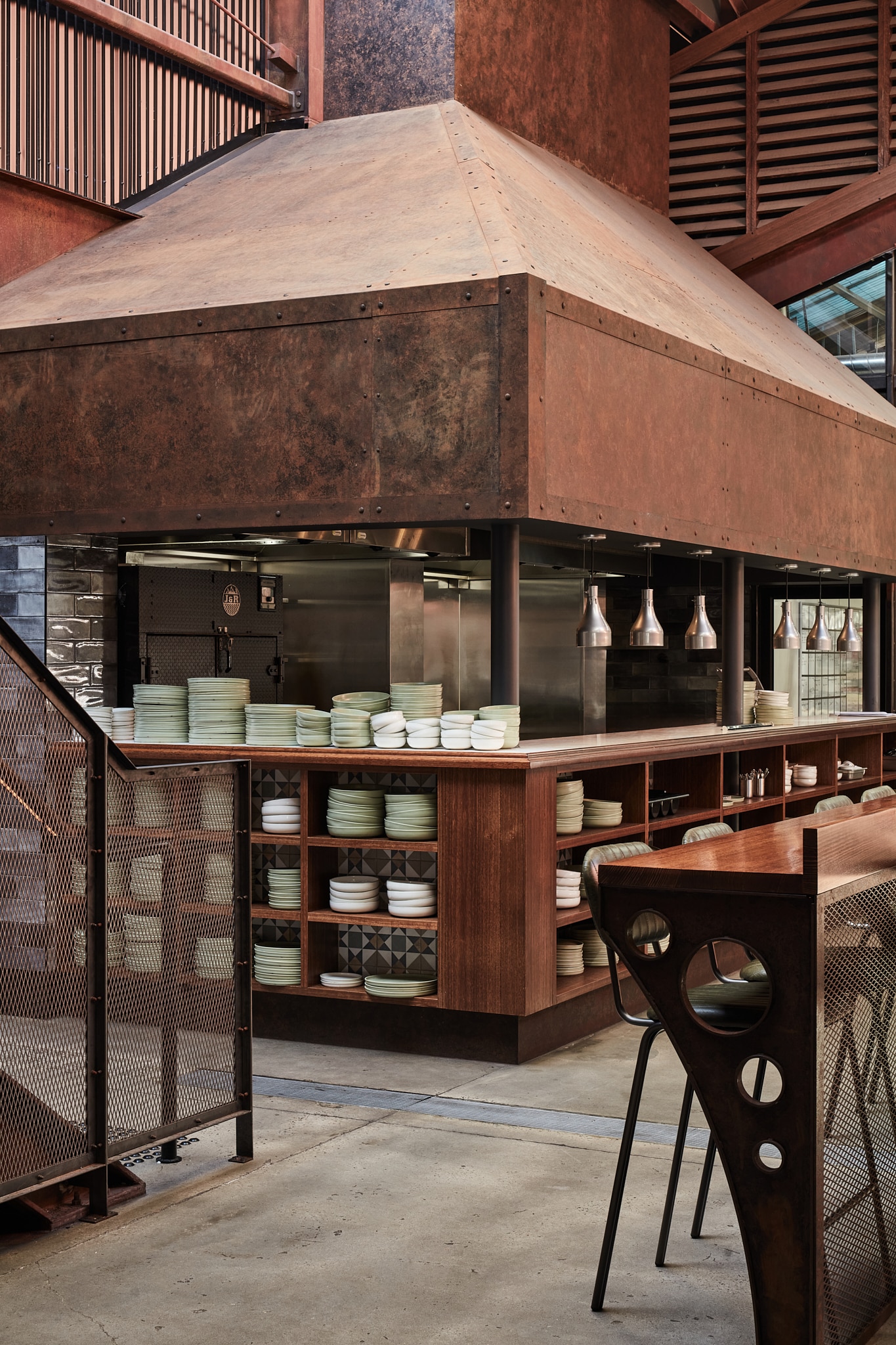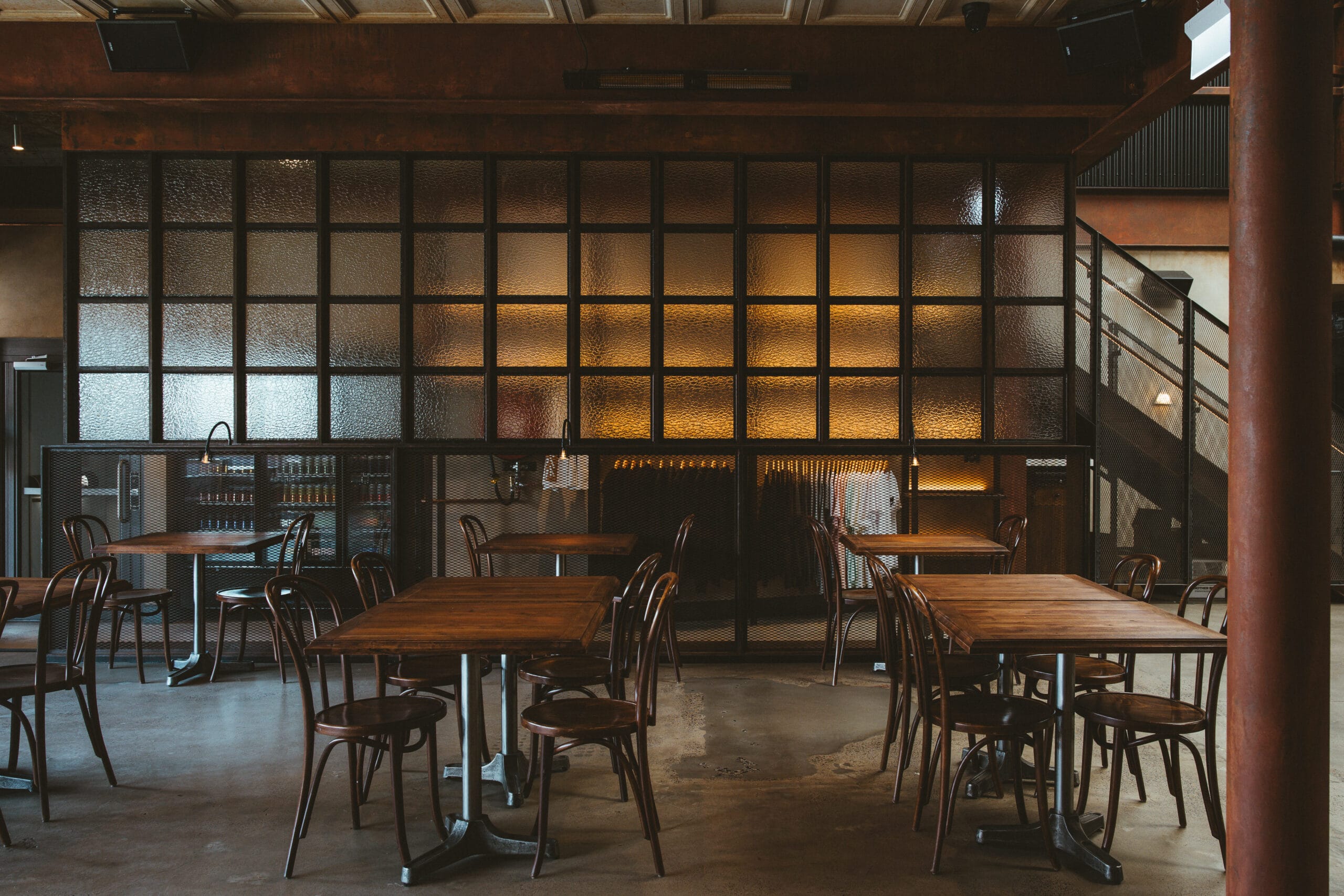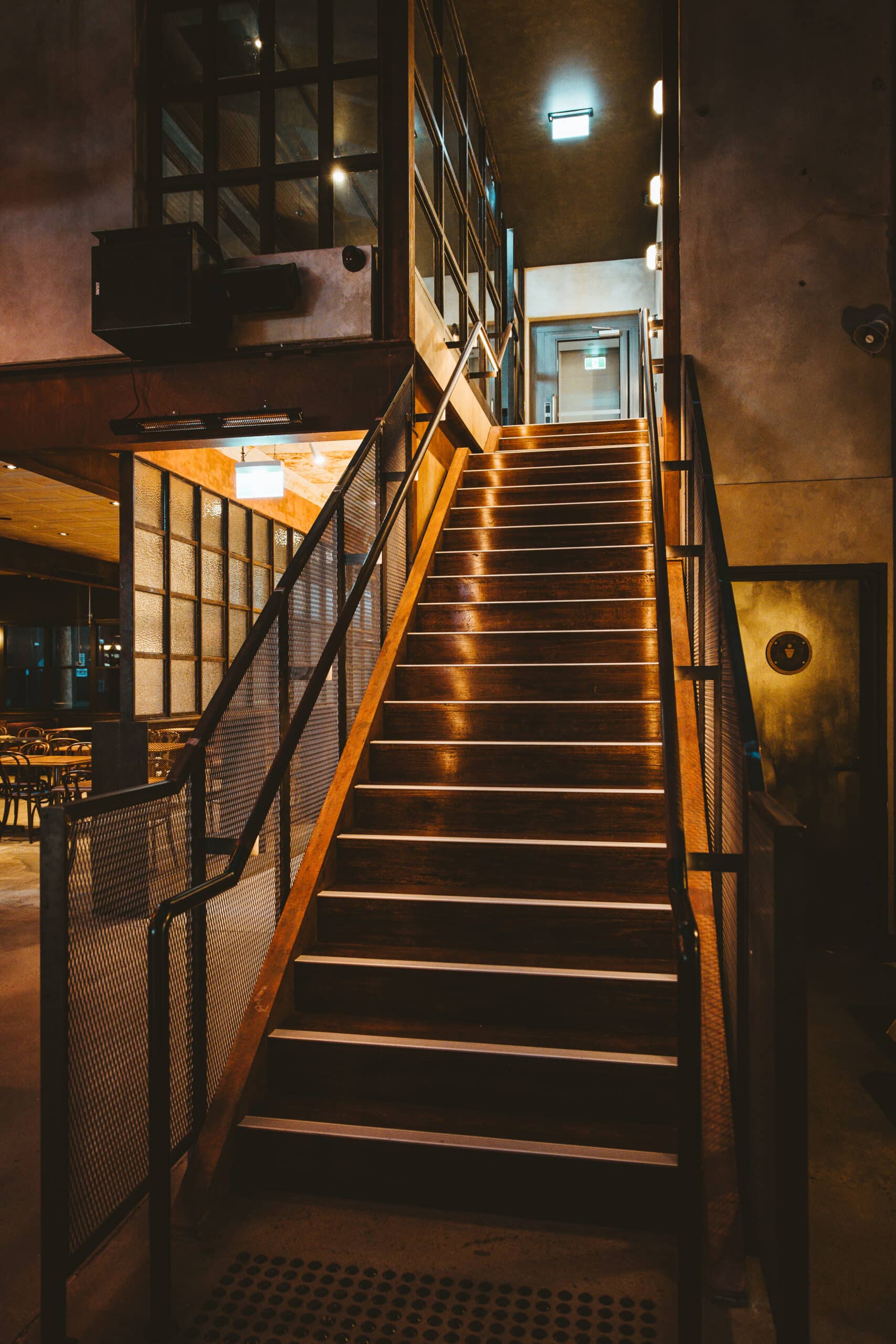 Significant customised aged metal works throughout to accompany vast amounts of customised solid and veneer timber joinery and wall panelling. This two level hospitality fitout is one that we celebrate.