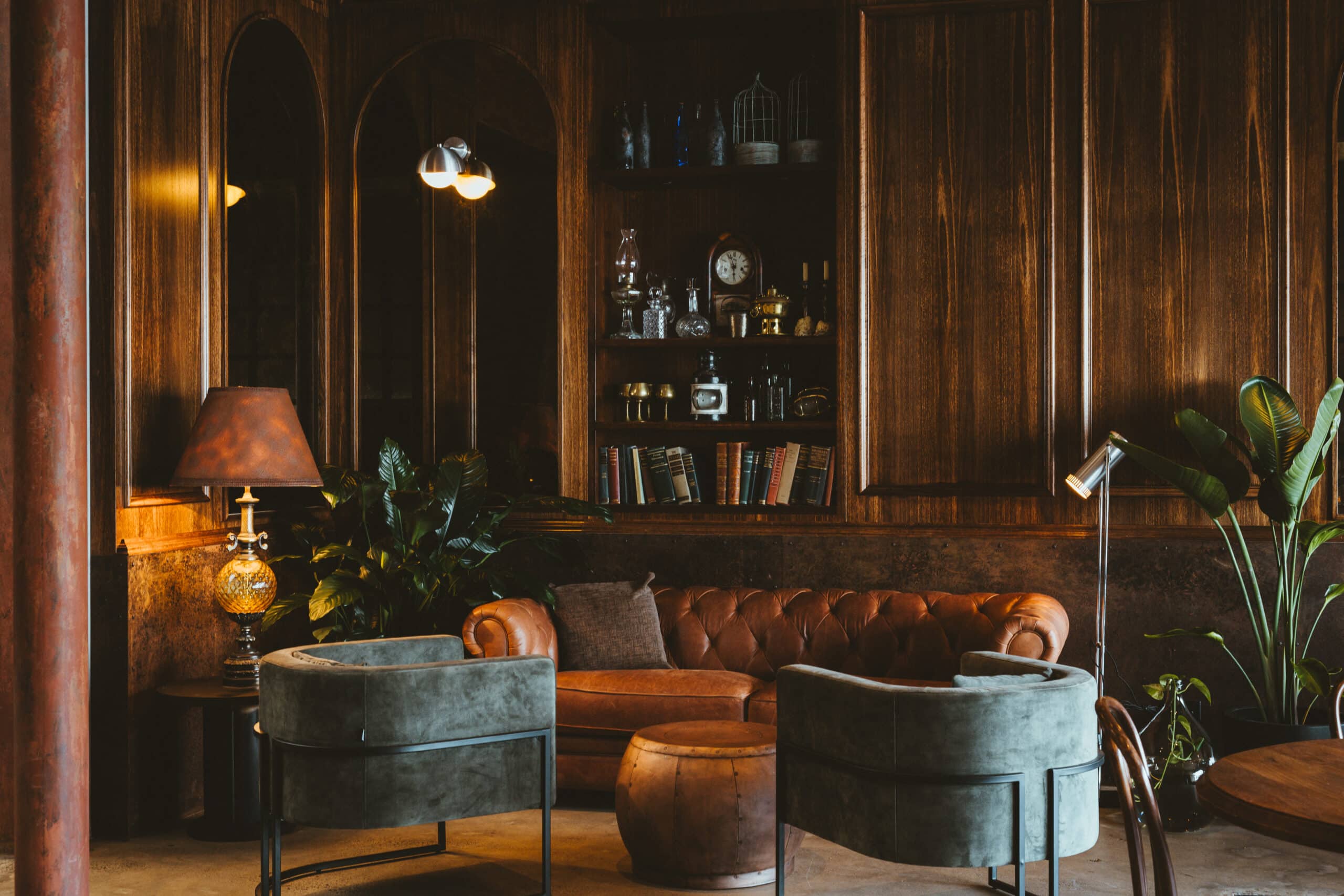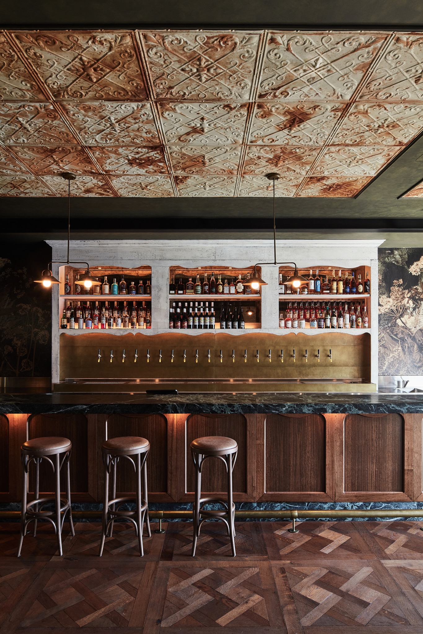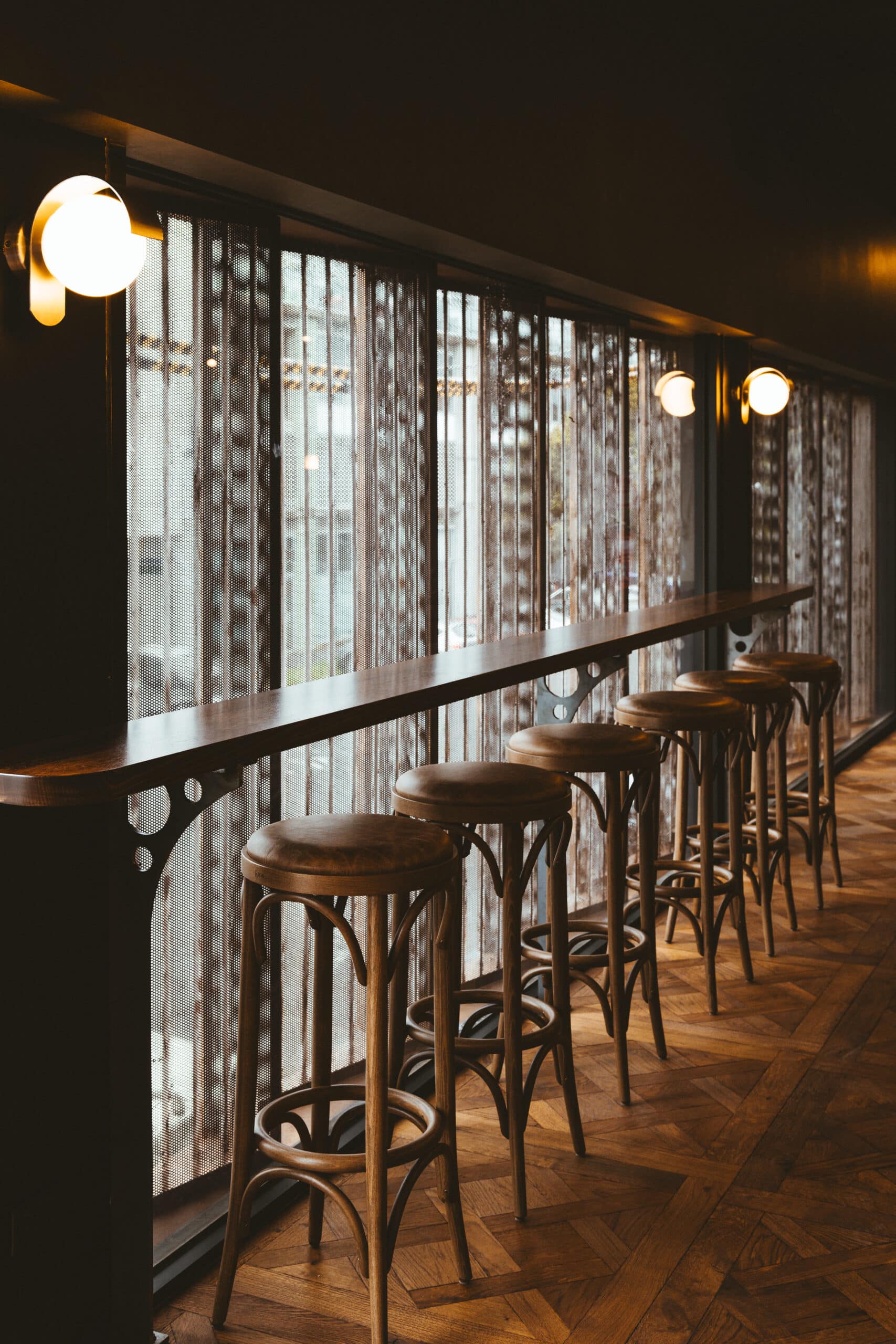Significant customised aged metal works throughout to accompany vast amounts of customised solid and veneer timber joinery and wall panelling. This two level hospitality fitout is one that we celebrate.